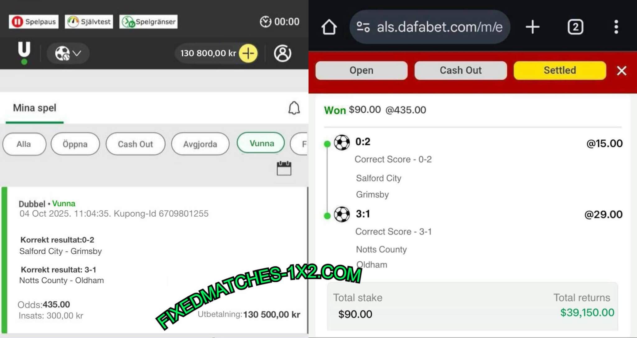 Firstly, Correct Score Fixed Matches are among our most popular and profitable fixed match offers. Firstly, this option gives you the unique opportunity to earn massive profits with a 100% guaranteed winning rate.